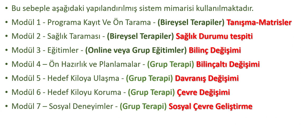 | Dersin Hedefi: | Obezit© Sistemi danışanı veya çalışanı olmak isteyenlere merkezlerin işlevsel özellikkeri hakkında detayları kazandırmak. |
